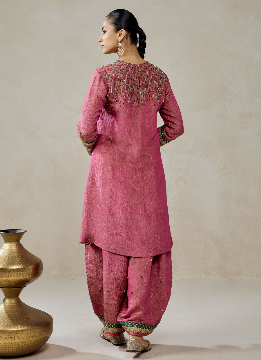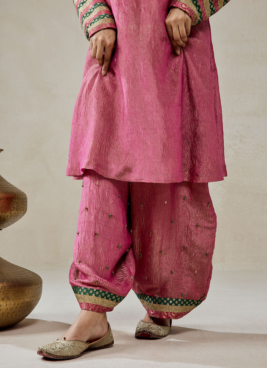 Rose Pink Crinkle Tissue Suit Salwar Set