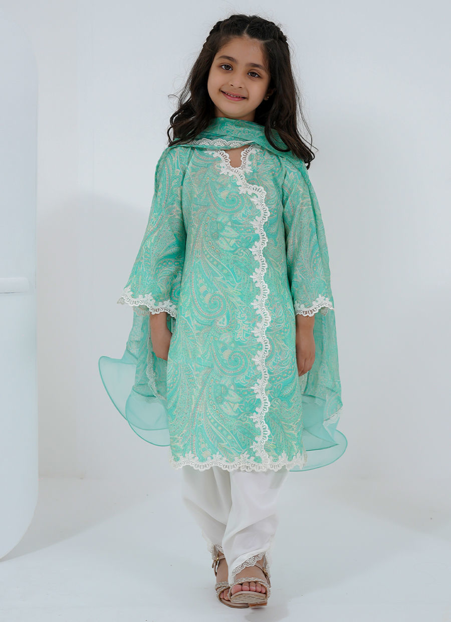 A graceful little rendition of our signature Sabrina, this mini version brings together delicate paisley-inspired prints and soft, flowing silhouettes. Designed in refreshing mint hues with lace detailing, it captures a timeless charm while keeping comfort at its core.
