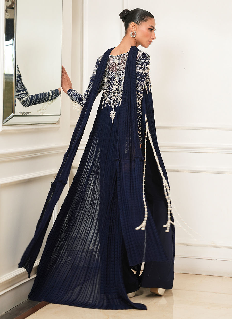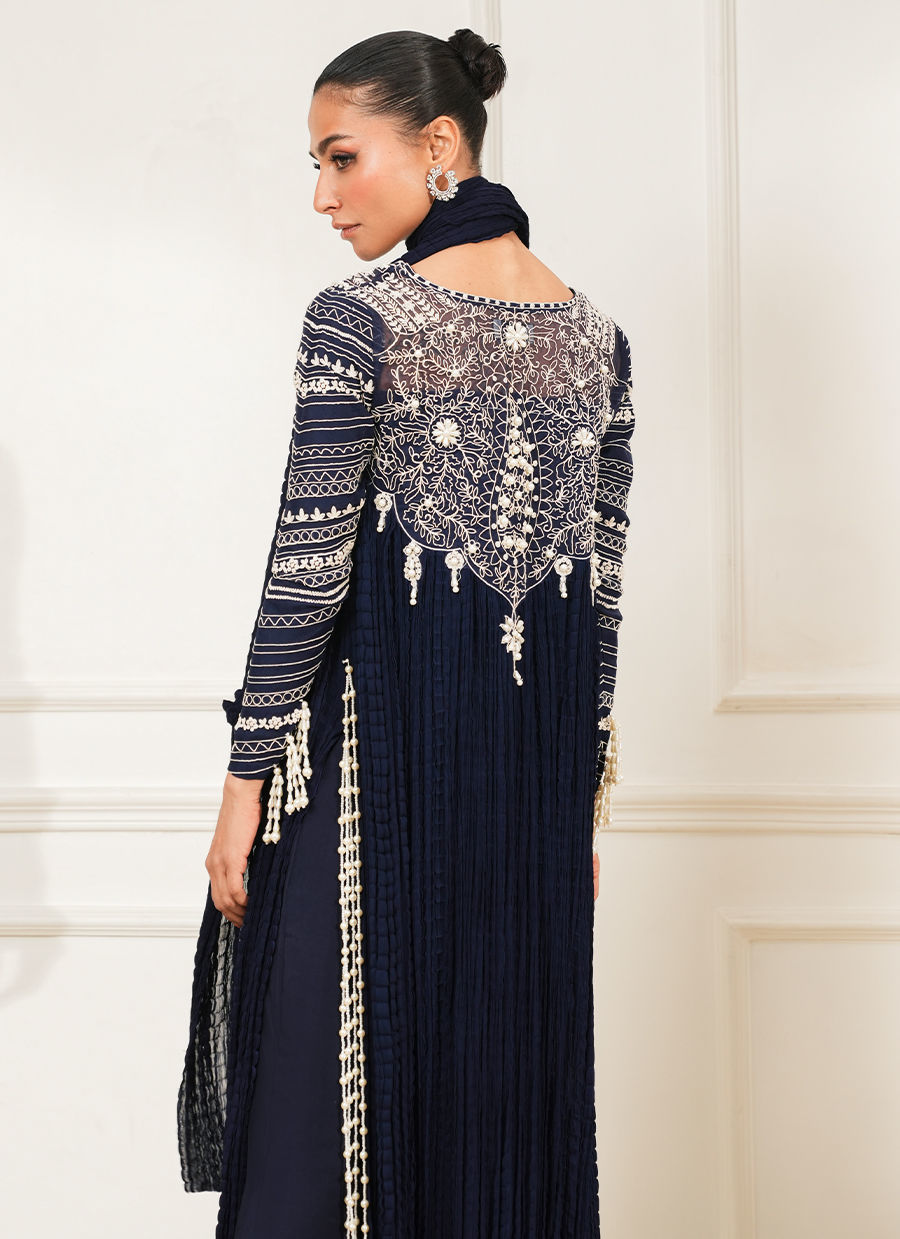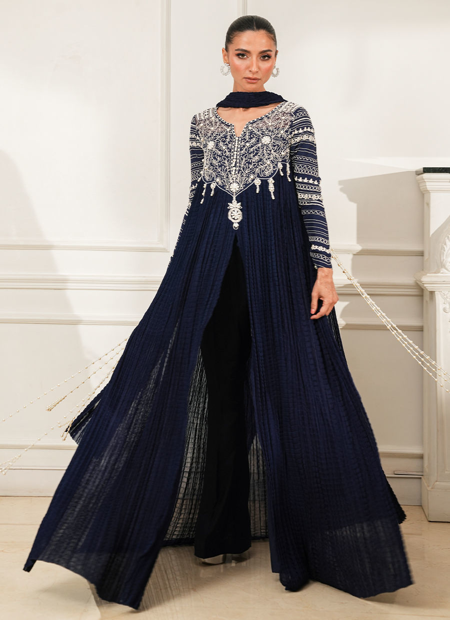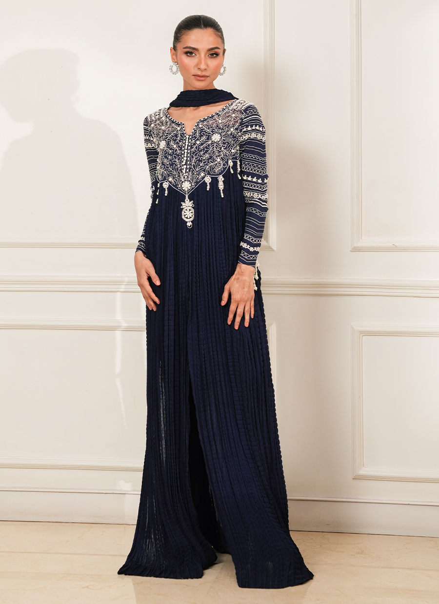 Color: Dark Blue Fabric: Crushed Silk Work Details: Embroidered