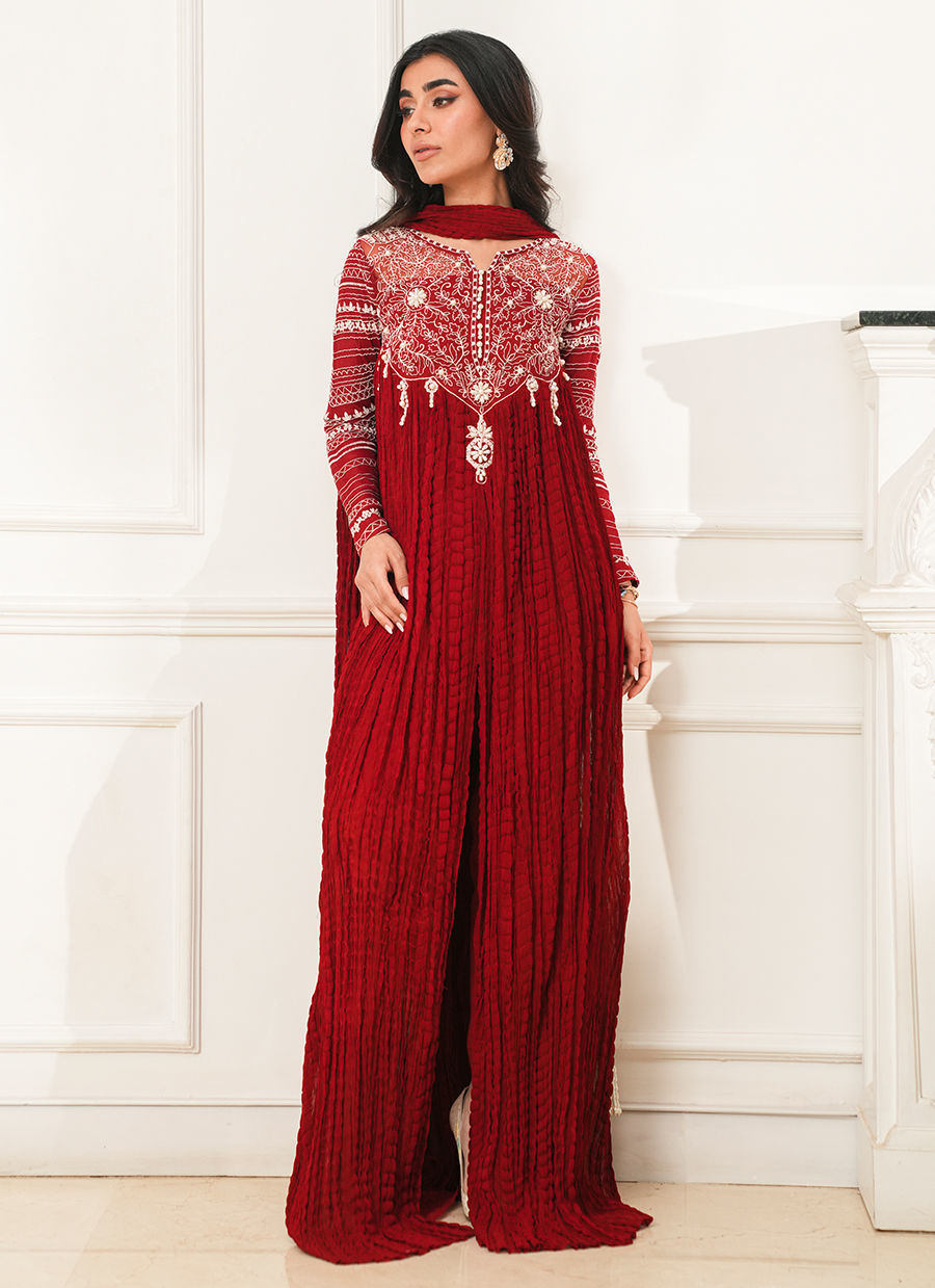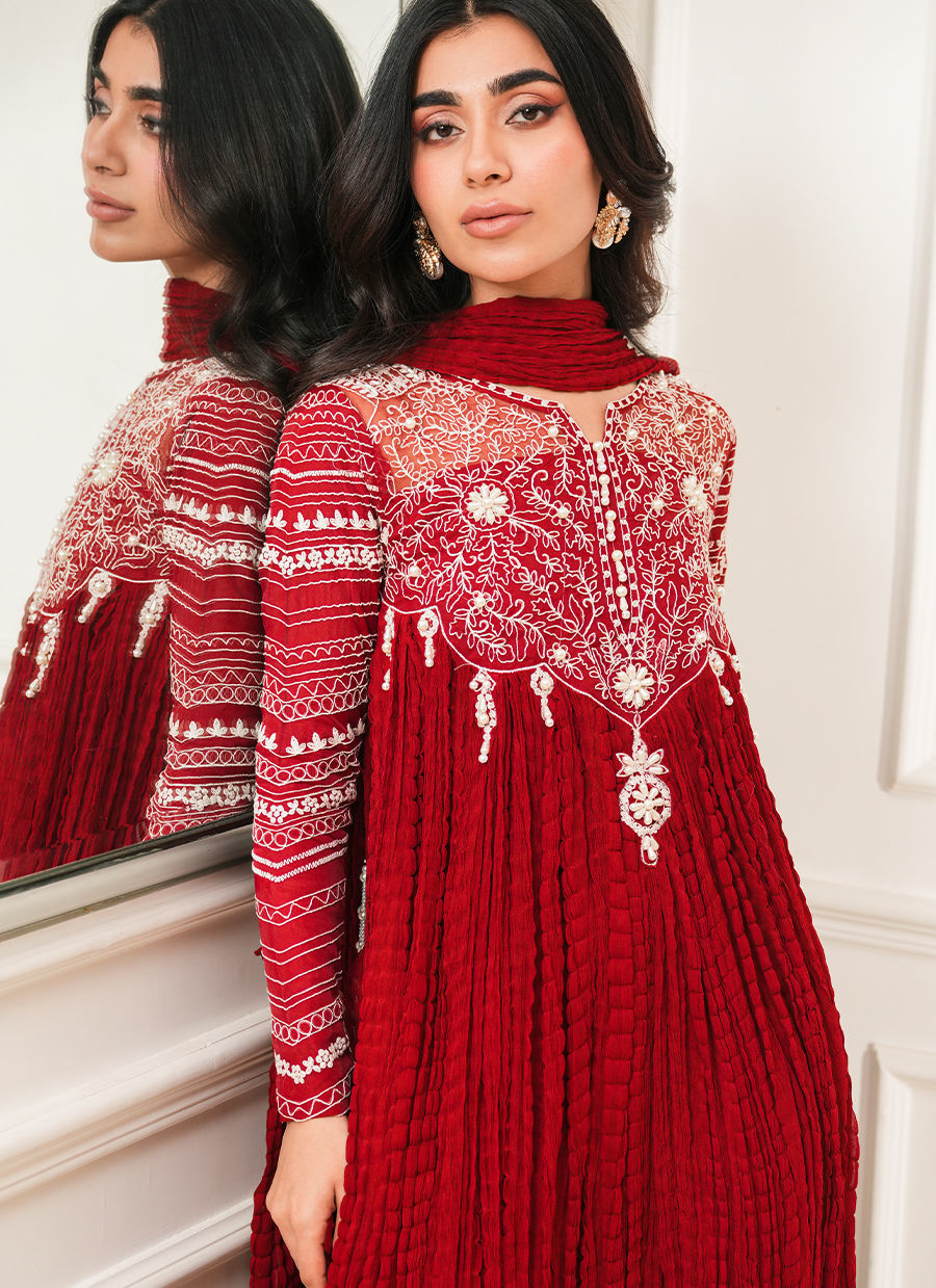 Color: Red Fabric: Crushed Silk Work Details: Embroidered