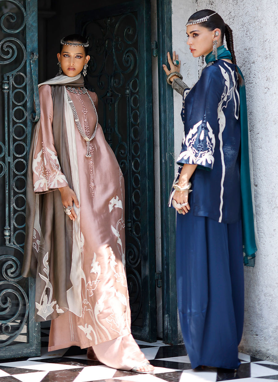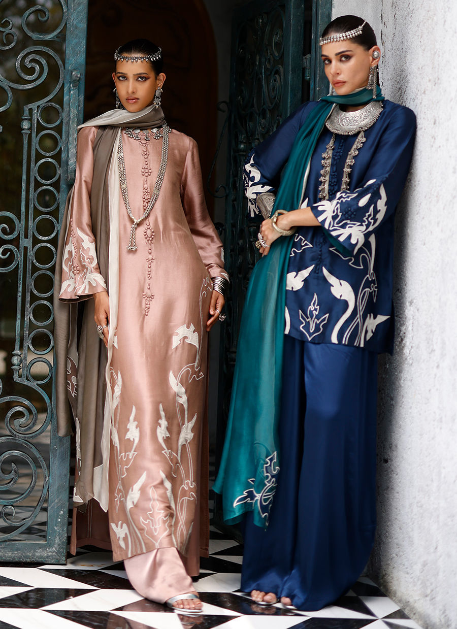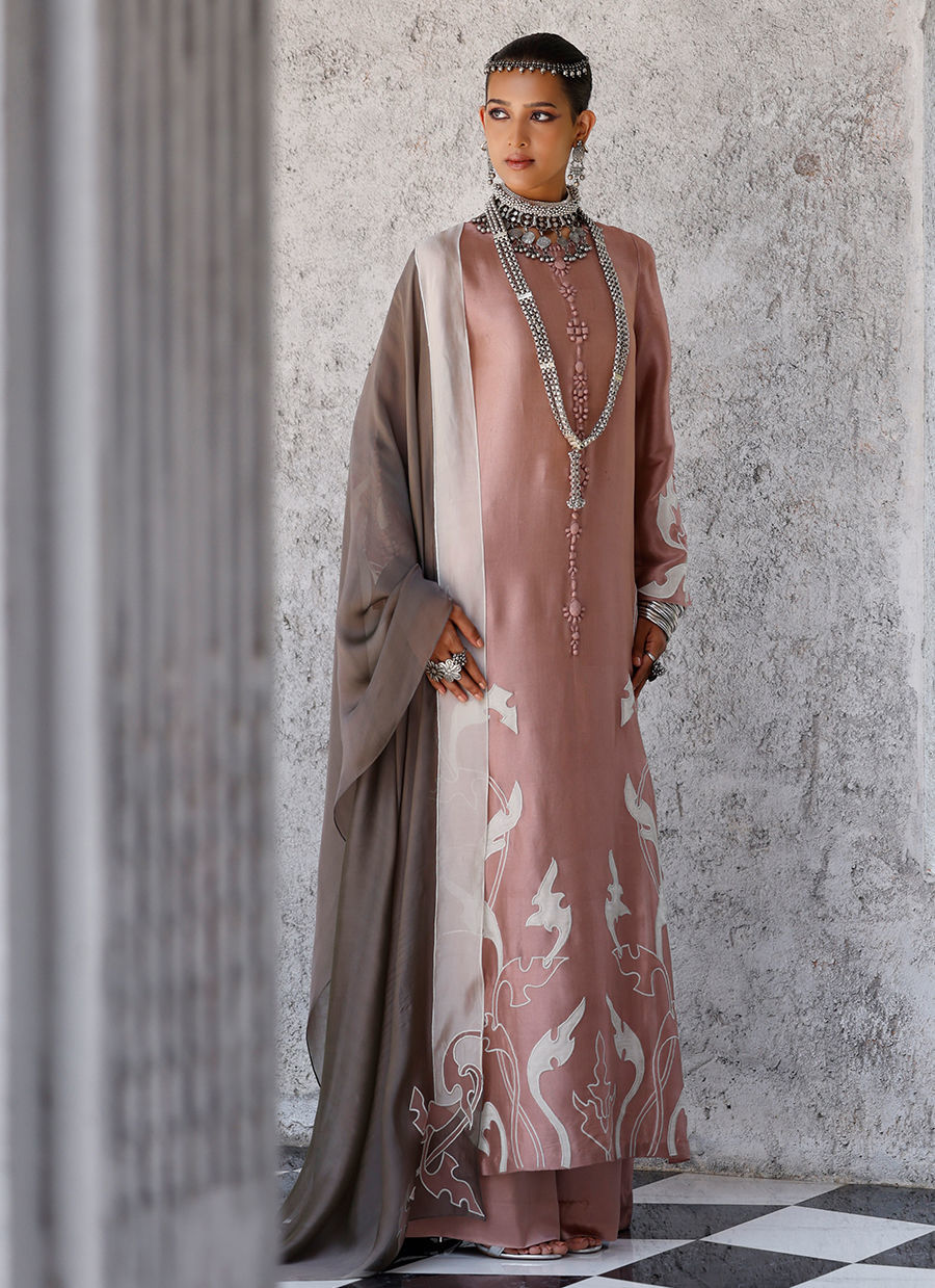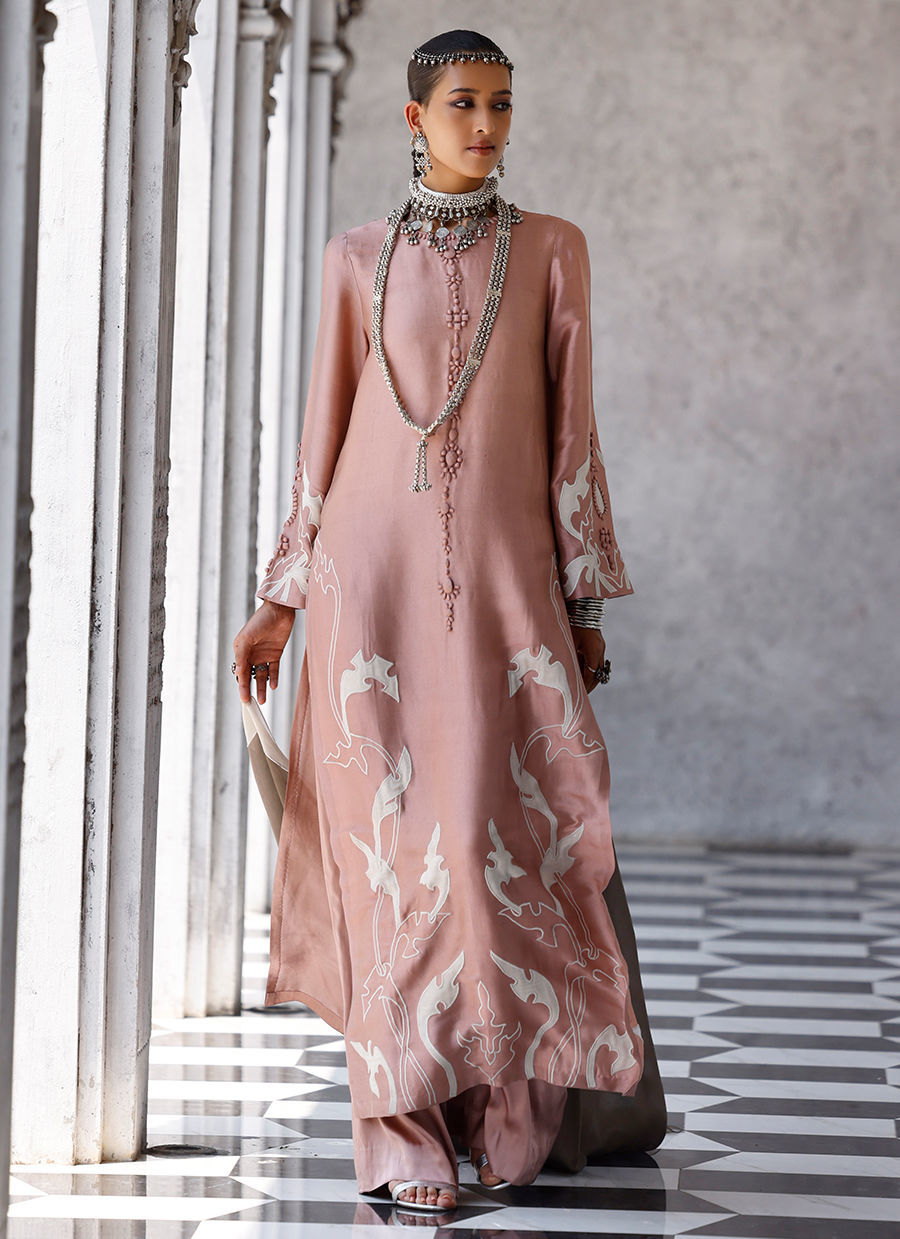 Color: Adobe Rose Fabric: Shirt: Butter Silk, Culottes: Cotton Charmeuse, Dupatta: Shisha Organza Work Details: Embellished