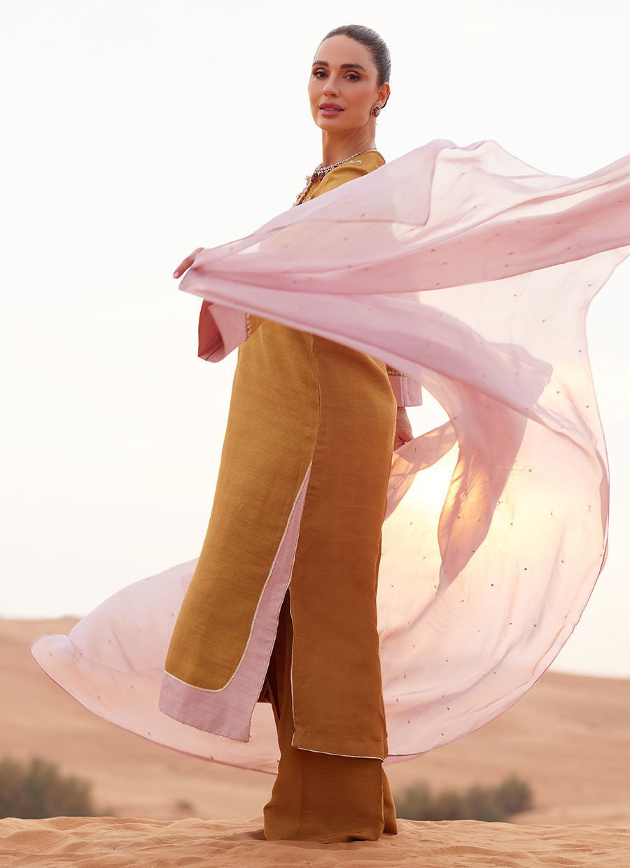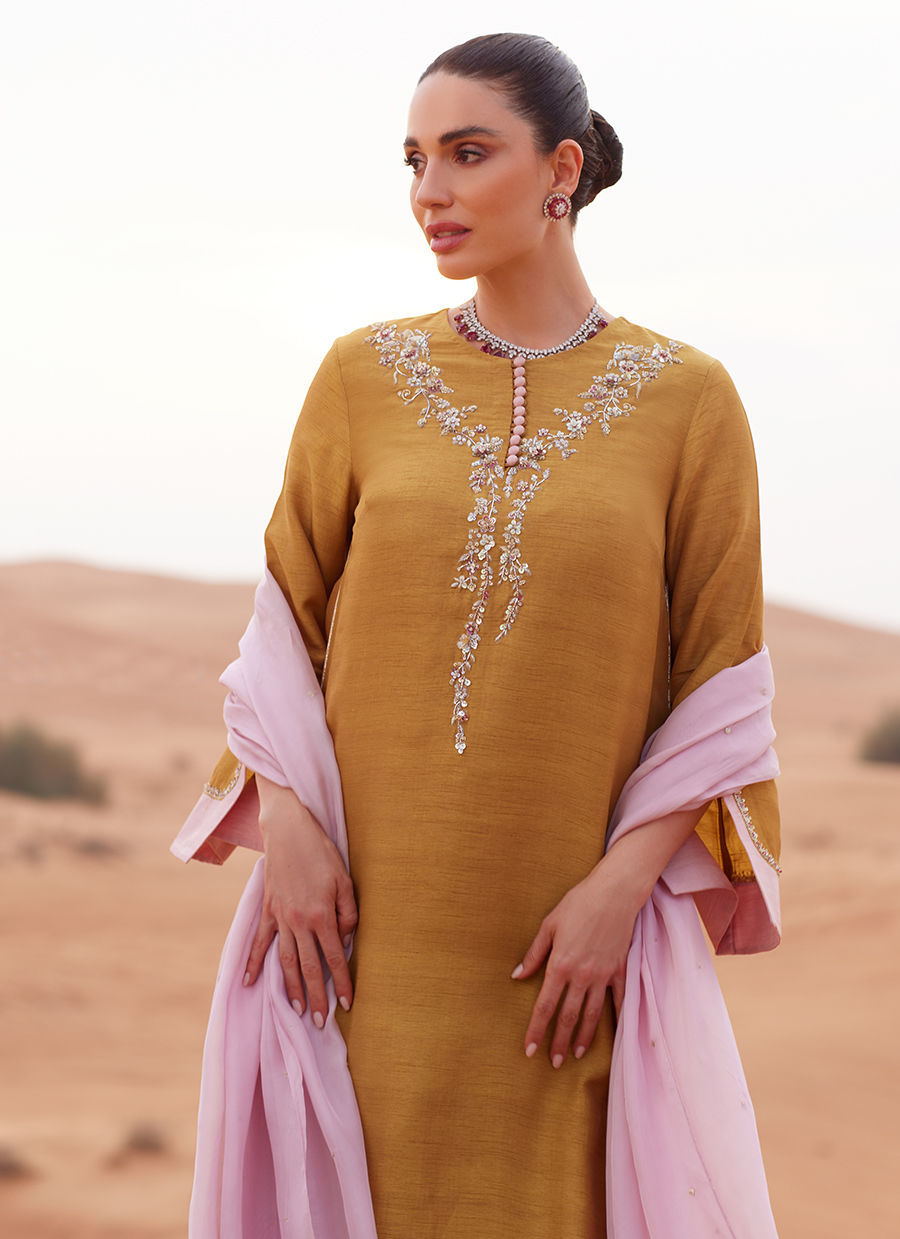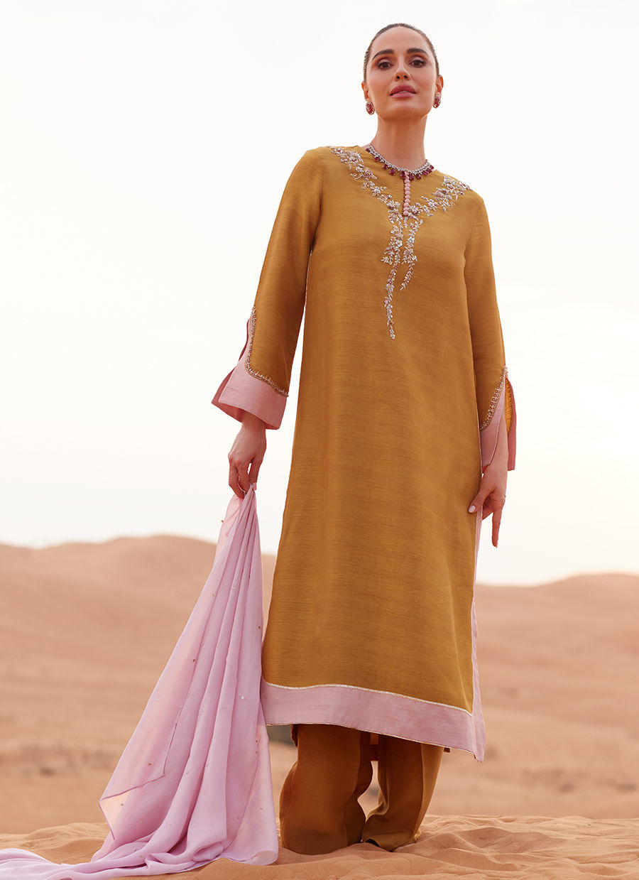 Color: Mustard Fabric: Shirt: Korean Silk, Pants: Korean Silk, Dupatta: KP Silk