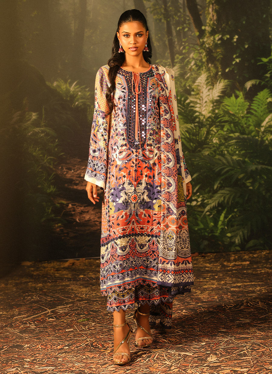 Color: Multi Fabric: Shirt and Ezaar: Crepe | Dupatta: Silk Work Details: Mirror Work
