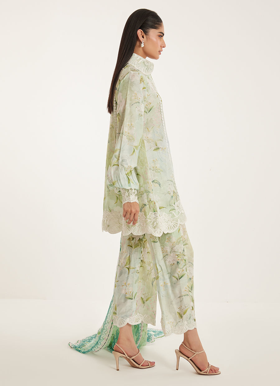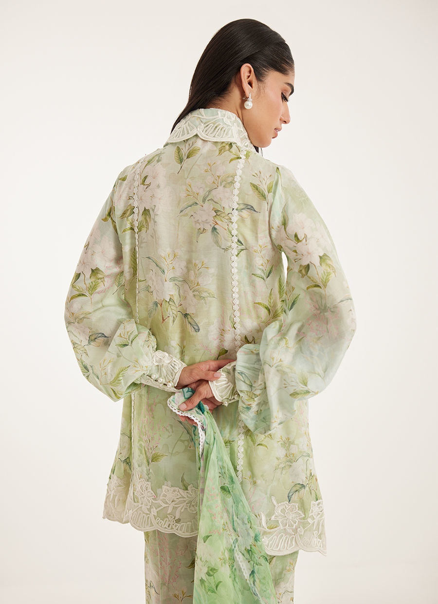 Fresh and quietly striking, Suzie is a soft play on pastel greens brought to life through delicate florals and fluid movement. The silhouette is relaxed yet polished, designed to fall effortlessly while maintaining a refined structure.