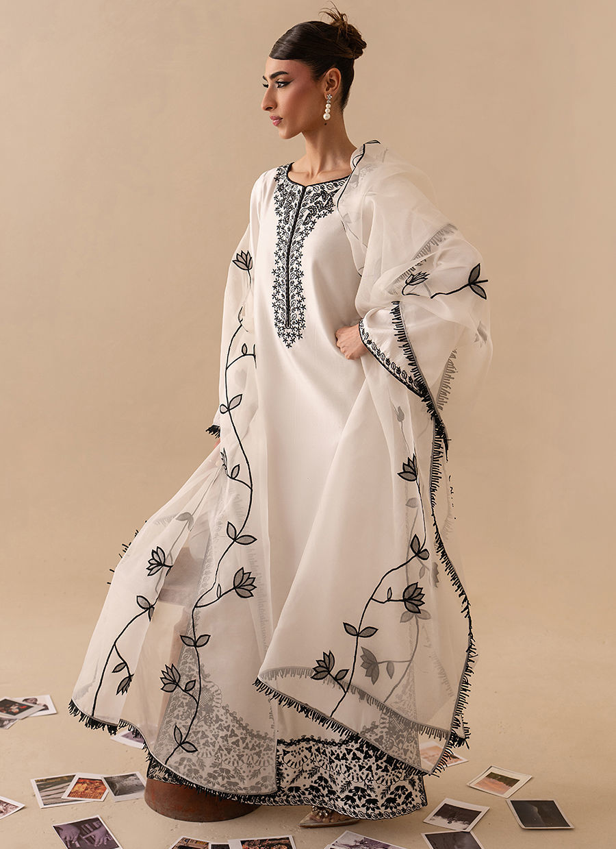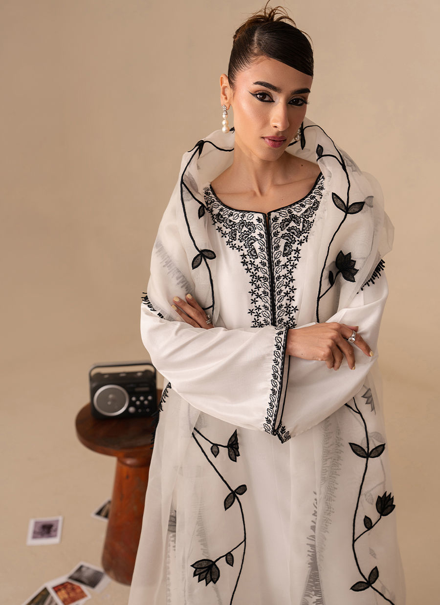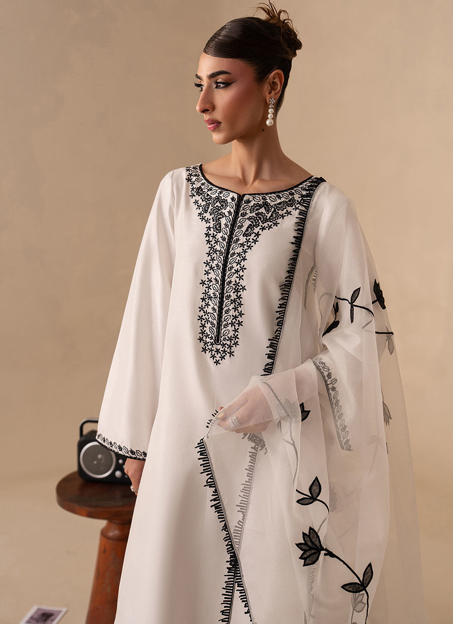 An organza dupatta, finished with delicate machine embroidery, completes the look with quiet grace for Ramadan evenings.