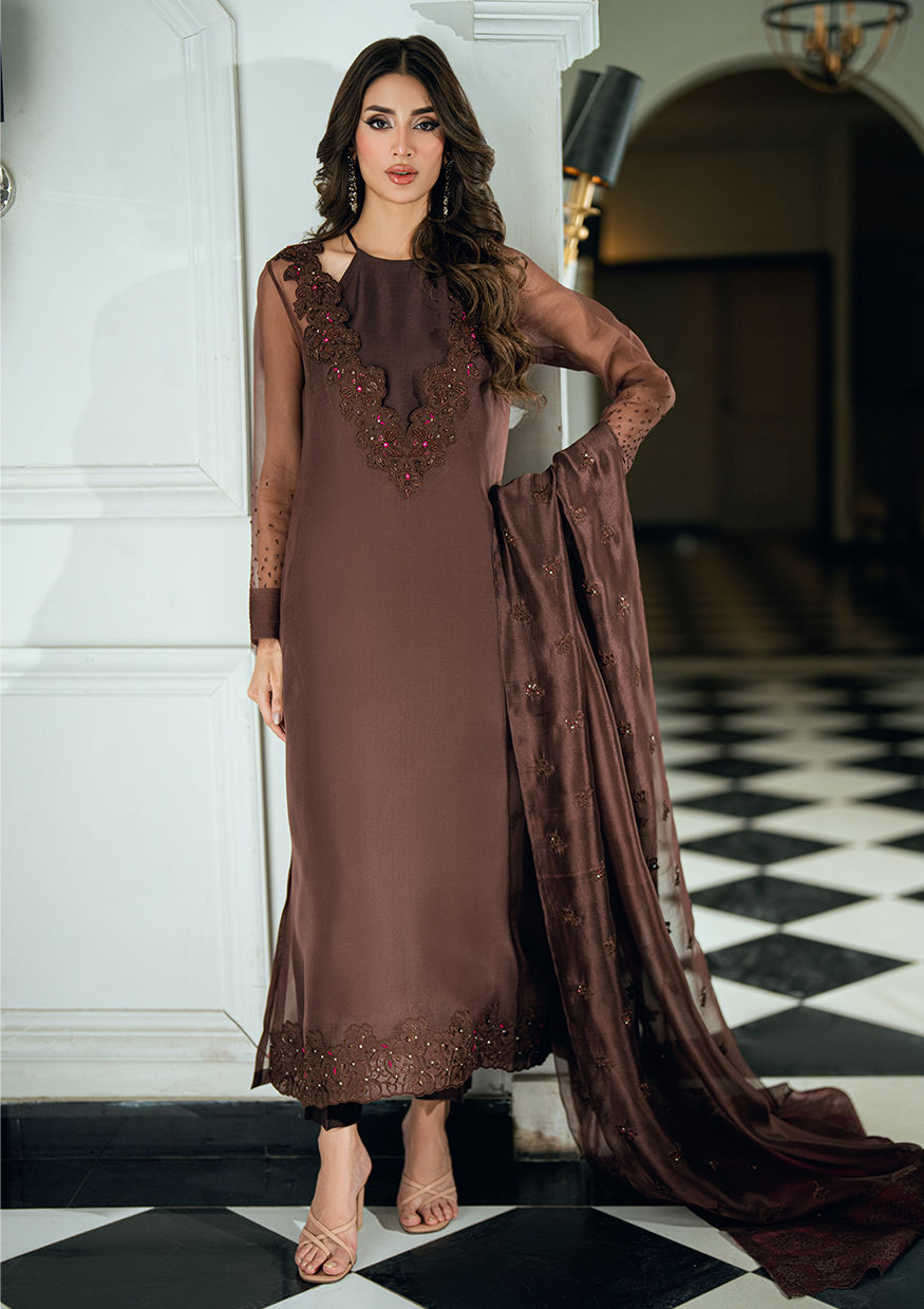 Designed with handwork on the neckline and hem, complemented with matching pants and a self-organza embroidered chan dupatta edged with Chantilly lace and a hint of pink for a timelessly refined finish.