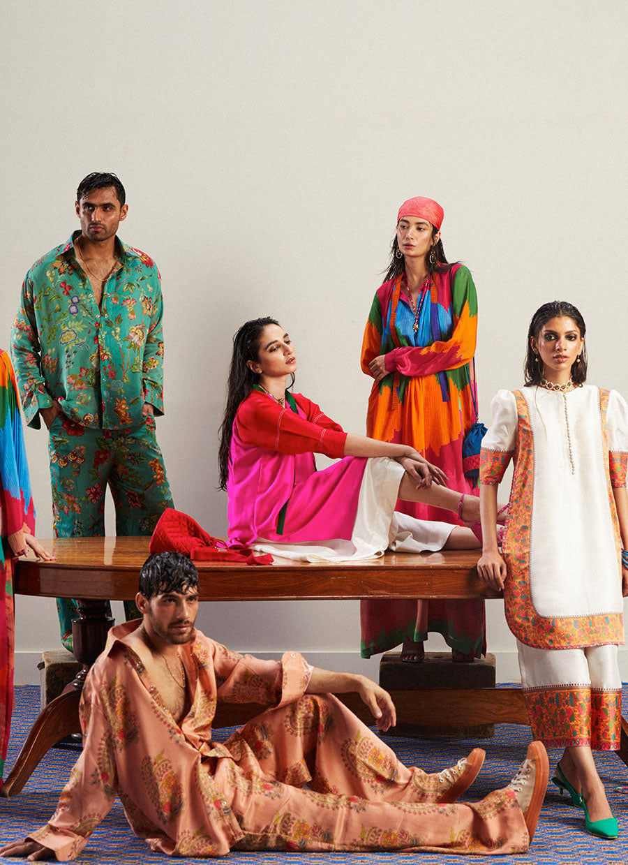 A green matching separate set, including a green printed button-down shirt with collar and a similarly printed trouser to pair it with.