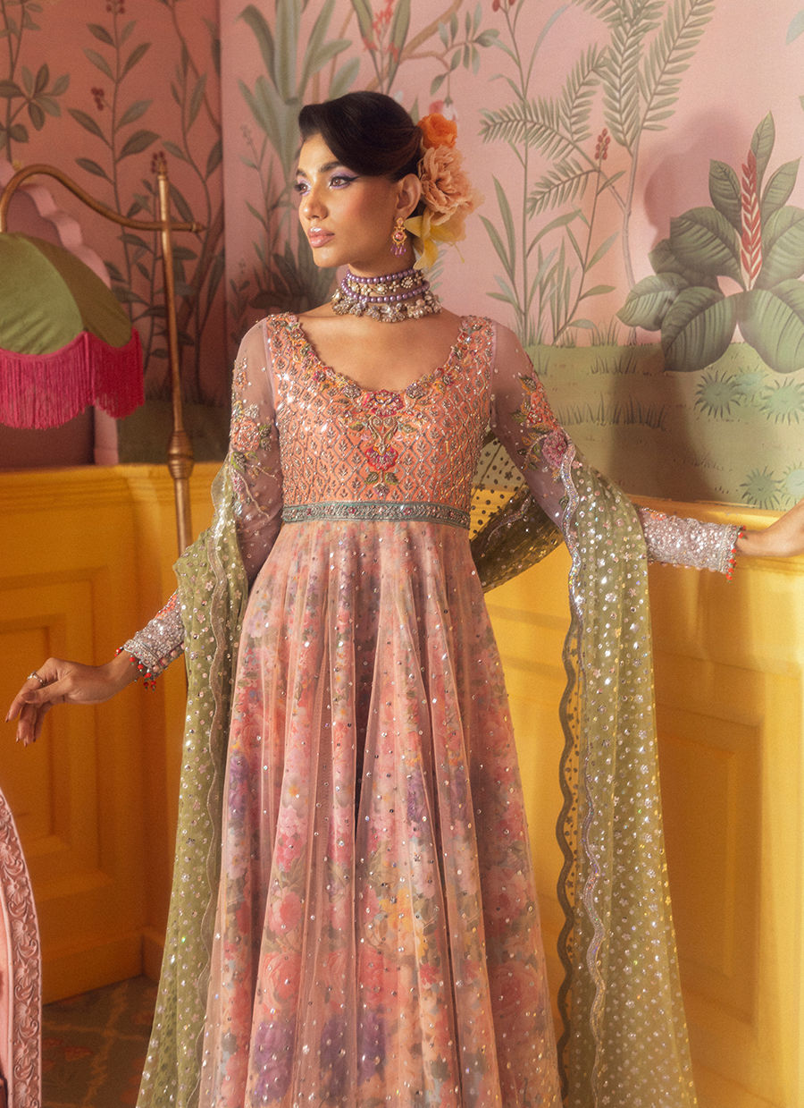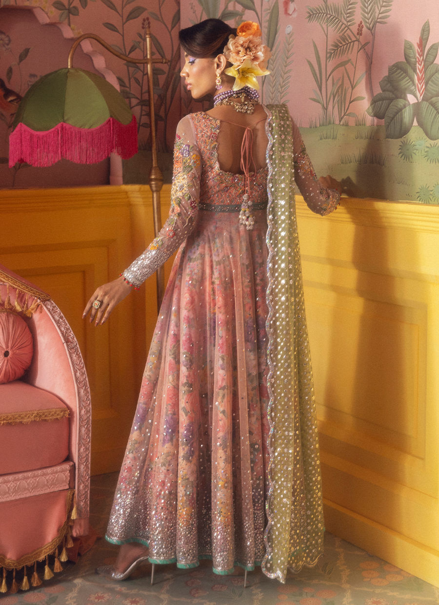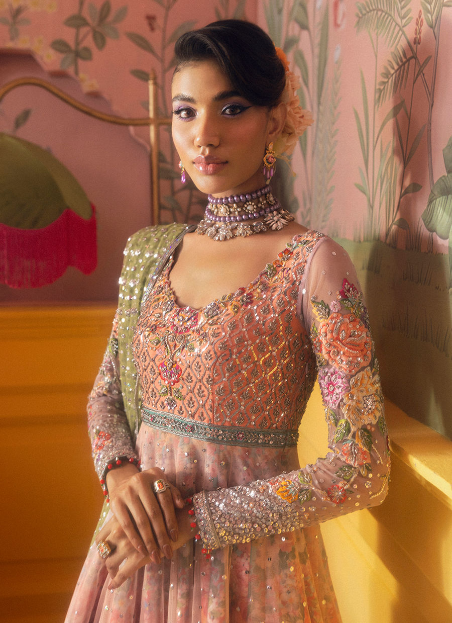 A classy pastel peshwas, featuring multi-coloured soft hues and intricate sequin work, perfect for daytime weddings and celebrations.