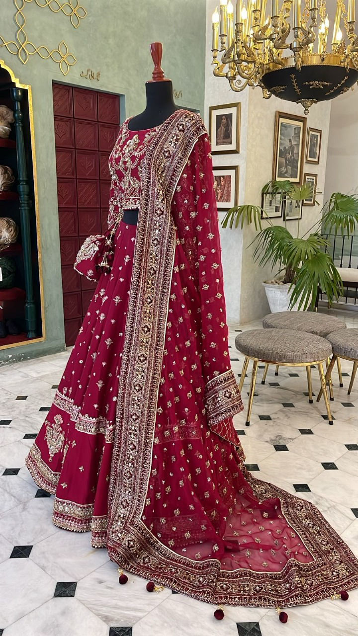 It has a hand-basted three-tiered ruffled top in velvet lined with a lush gold fabric. The skirt is constructed with three tones of lustrous silver and gold hand spun tissue immaculately appliquéd.