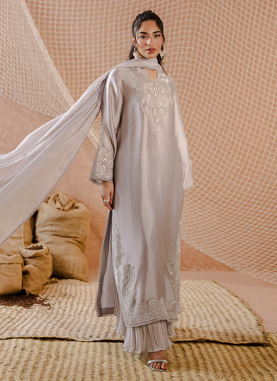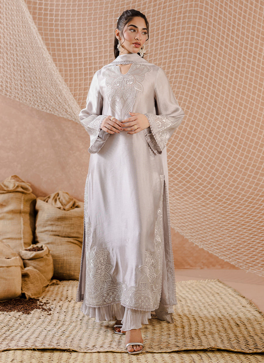 Color: Grey Fabric: Sheesha Silk Work Details: Embroidery