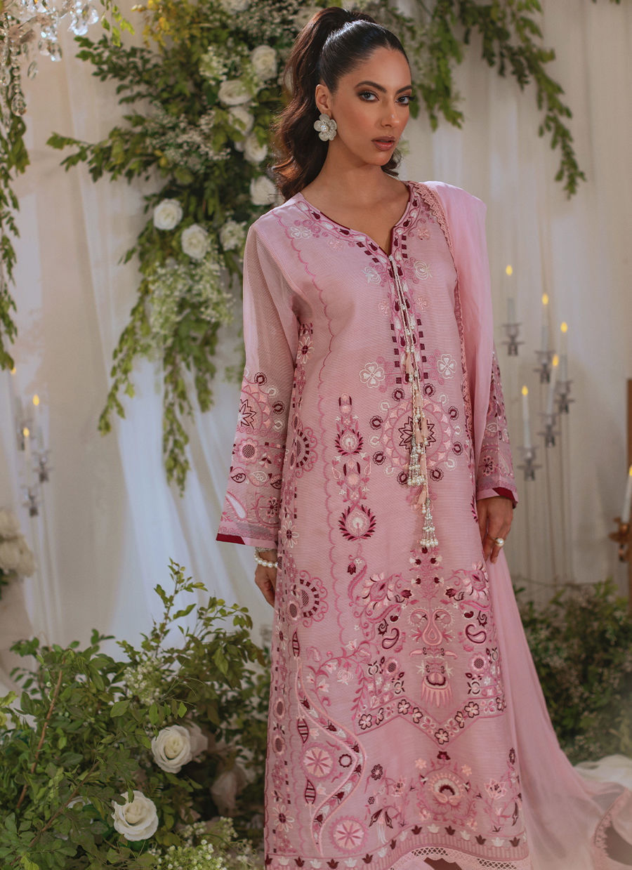 Color: Tea Pink Fabric: Organza Work Details: Embroidered