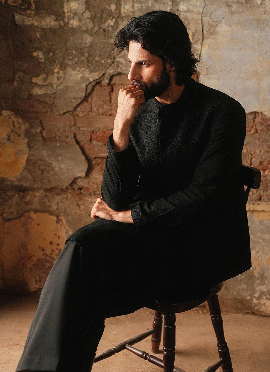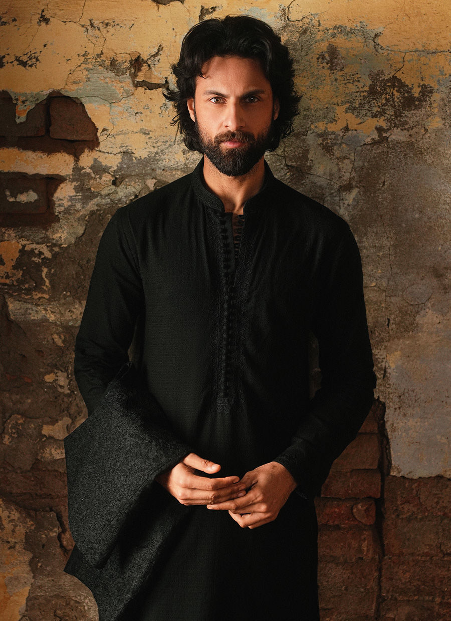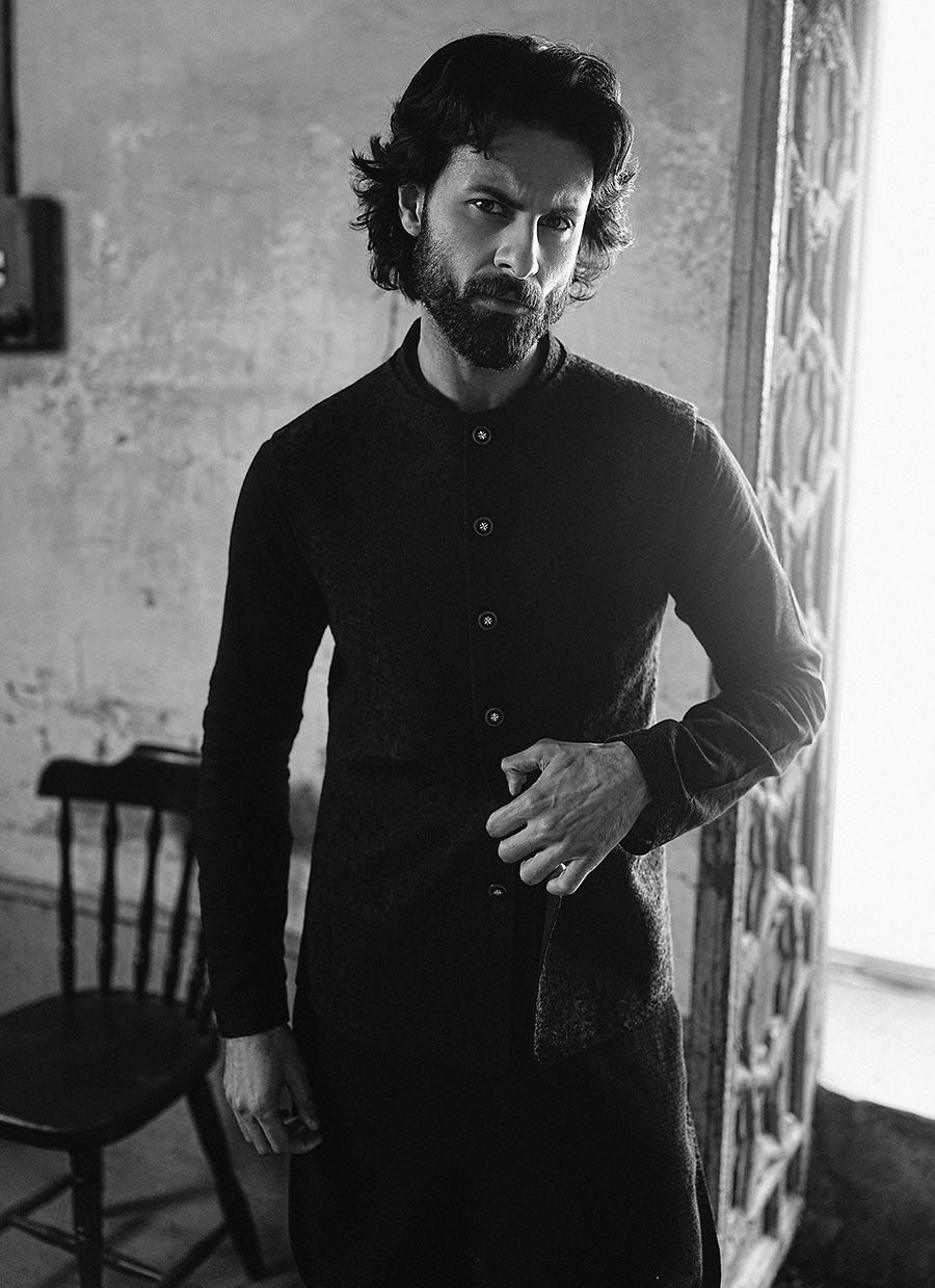 A refined fusion of textures and craftsmanship, this ensemble features a stylish waistcoat made from luxurious paper silk fabric, adorned with an all-over floral repeat that adds a graceful and sophisticated charm. The kurta is crafted from self cotton (jacquard), offering a soft feel with subtle woven detailing, and is beautifully enhanced with intricate Aari work for a touch of traditional elegance. Perfectly balanced between modern style and classic artistry, this outfit is ideal for festive gatherings and special occasions.